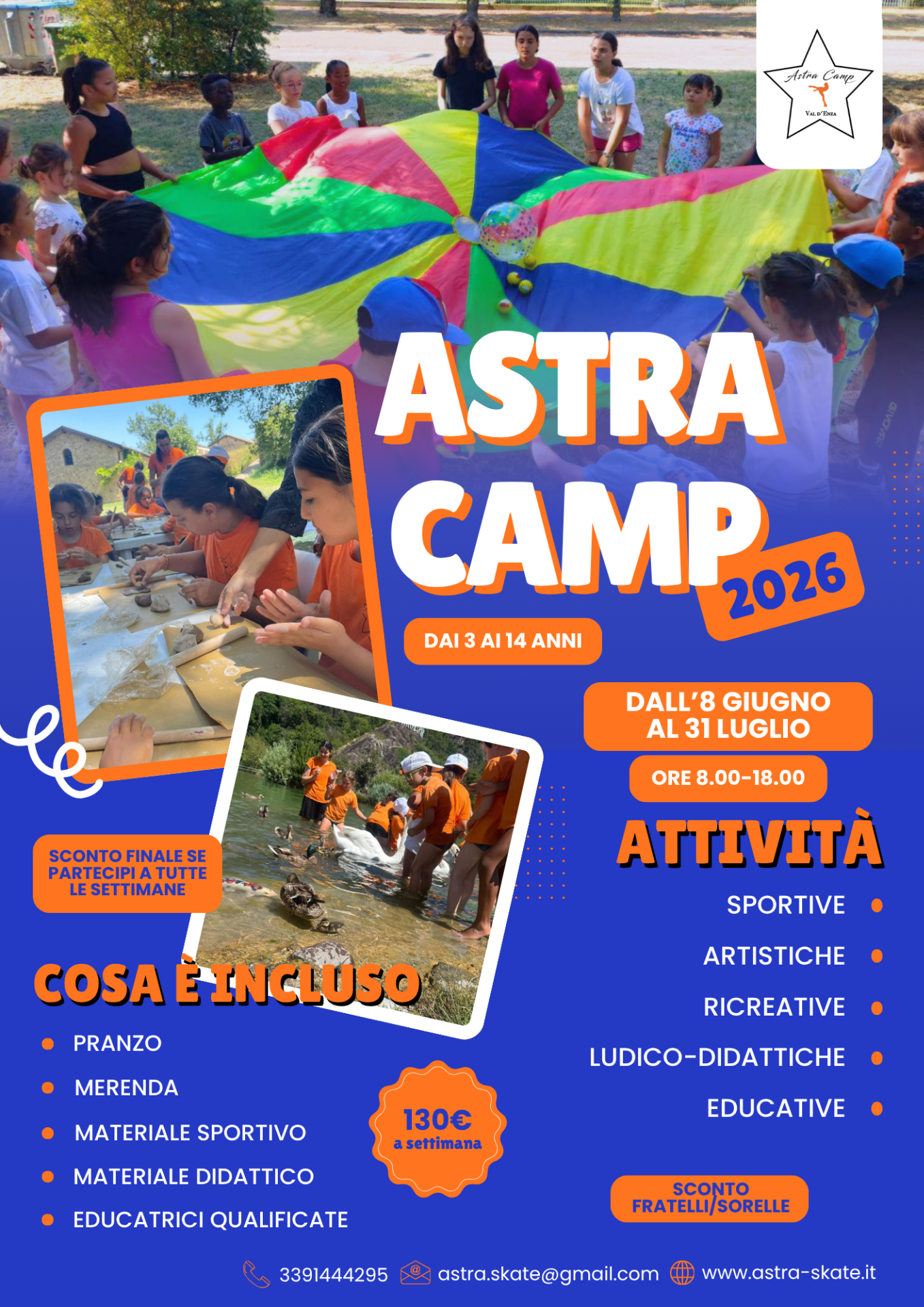 Inclusi noleggio dei pattini, merenda pomeridiana e tutto il materiale didattico e sportivo fornito